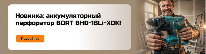 Лёгкий. Удобный. Именно такой, каким должен быть перфоратор для работы BORT BHD-18Li-XDK – лёгкий, хорошо сбалансированный и не утомляет, когда приходится работать на высоте или держать инструмент...
