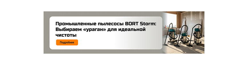 Линейка промышленных пылесосов BORT Storm доказывает на деле, что уборка сложных загрязнений не должна быть мучением. Это надежные, мощные и продуманные аппараты, которые превращают хаос в порядок. Выбрав своего, вы навсегда забудете, что такое «пылесосить полчаса, отсиживаться час». Доверьте уборку технике, которая ее не боится!